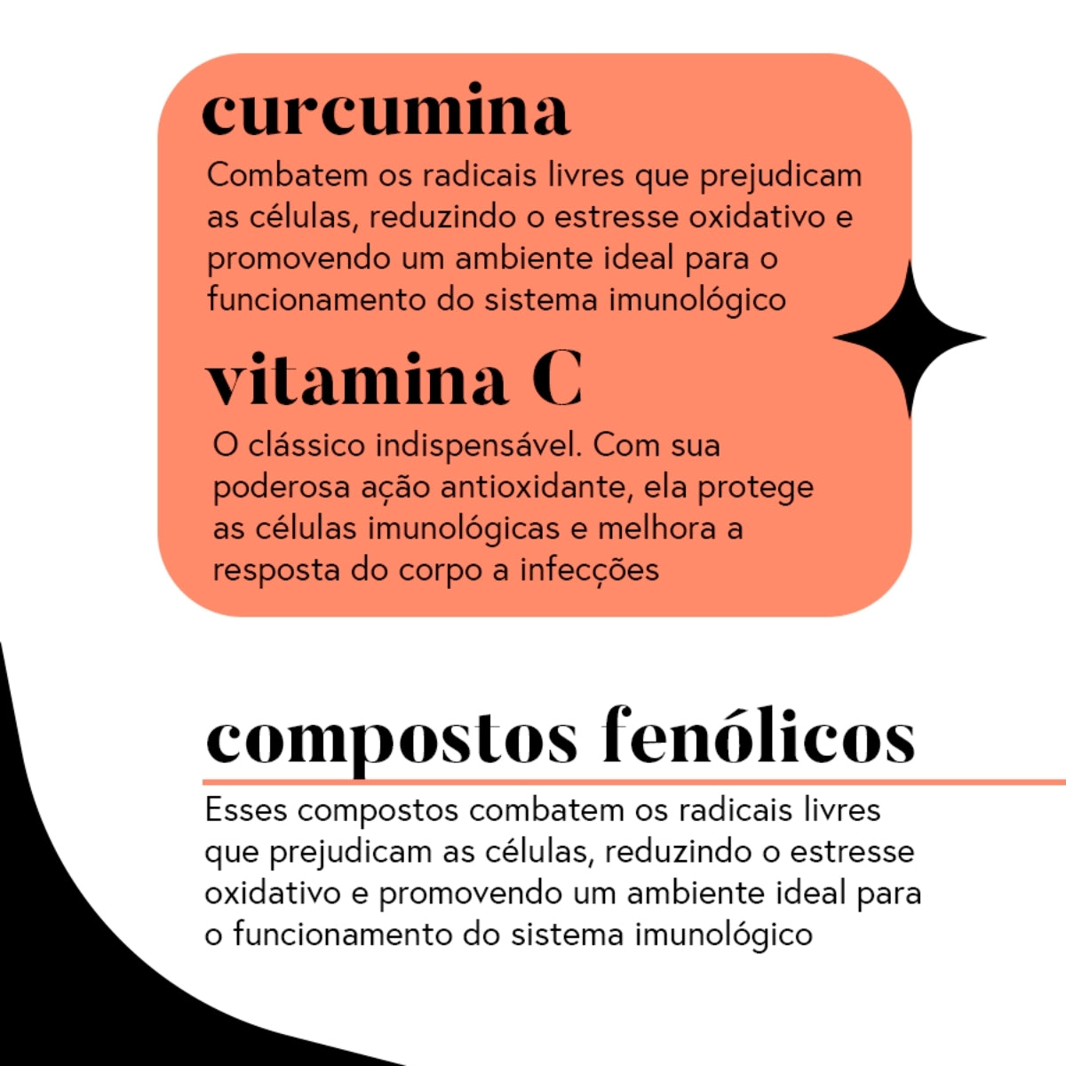 • Cúrcuma – Poderoso anti-inflamatório natural, auxilia na regulação da resposta imunológica