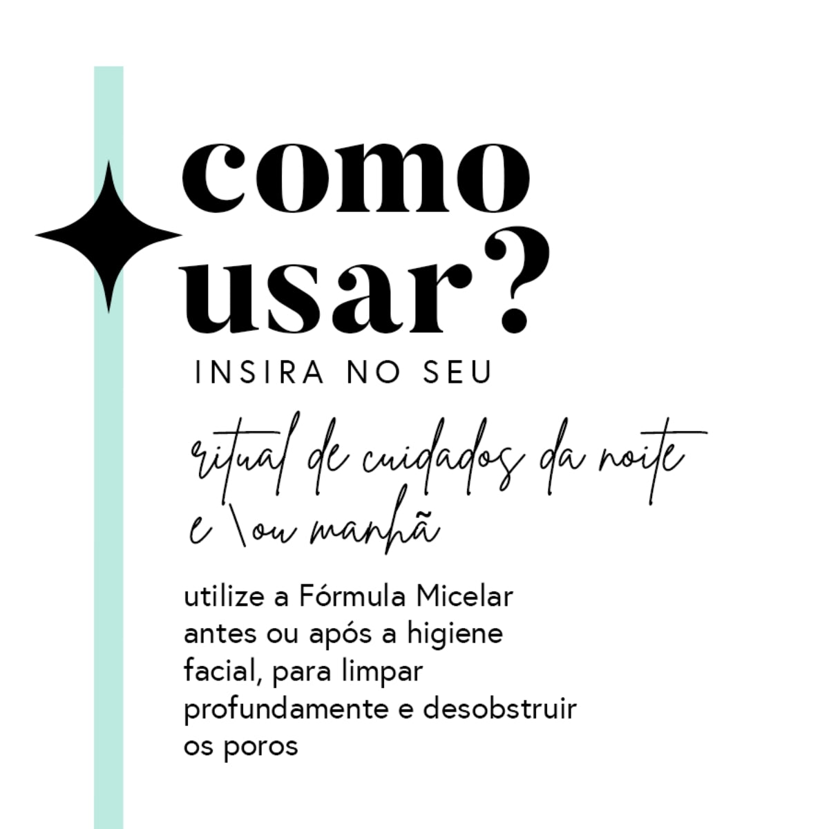 - Aplique a Fórmula Micelar Rituária em um algodão e passe suavemente sobre a pele do rosto e pescoço, pela manhã e à noite.